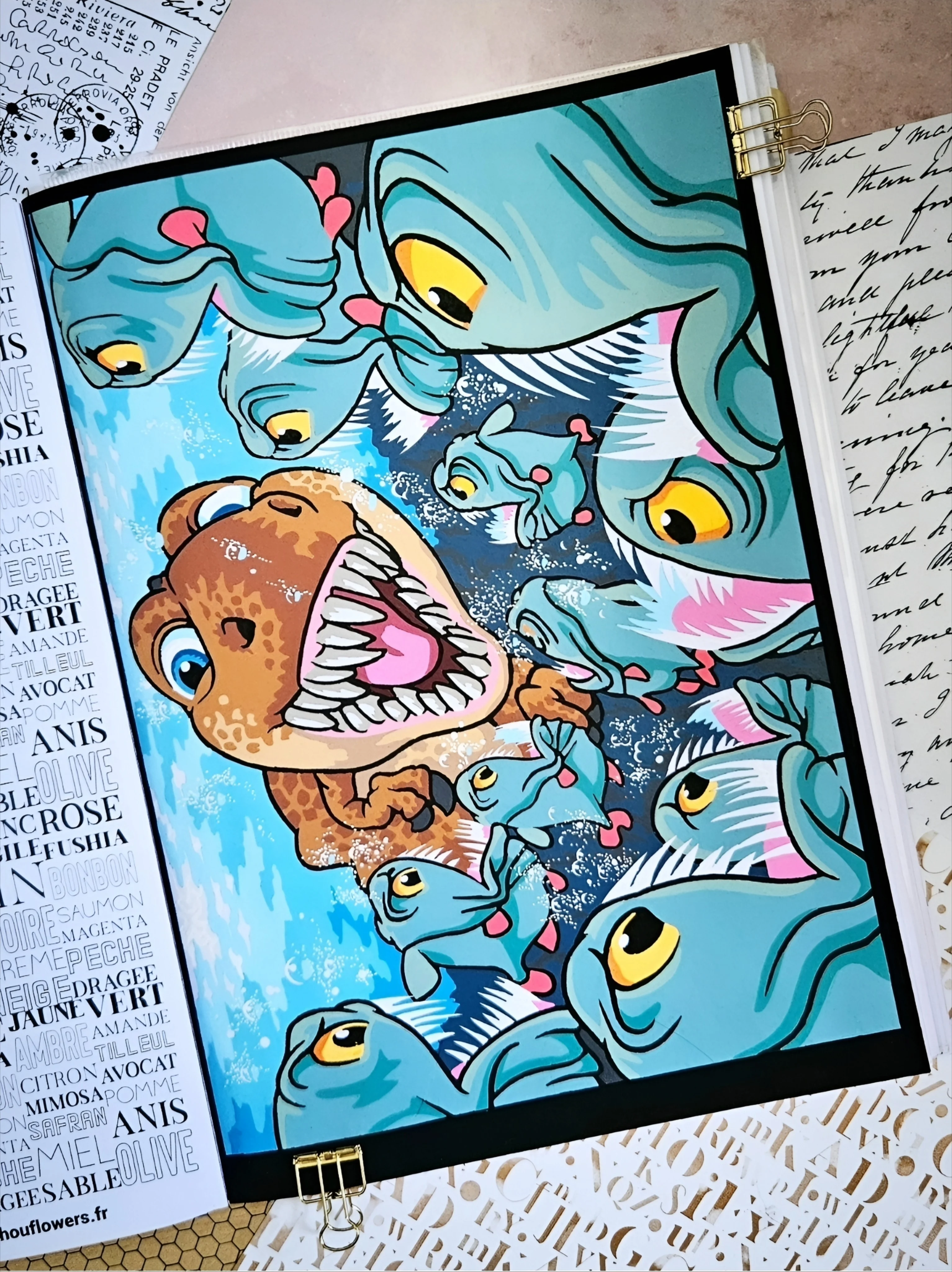 Coloriage Mystère Petit T-Rex et les Piranhas par Marlene Arts