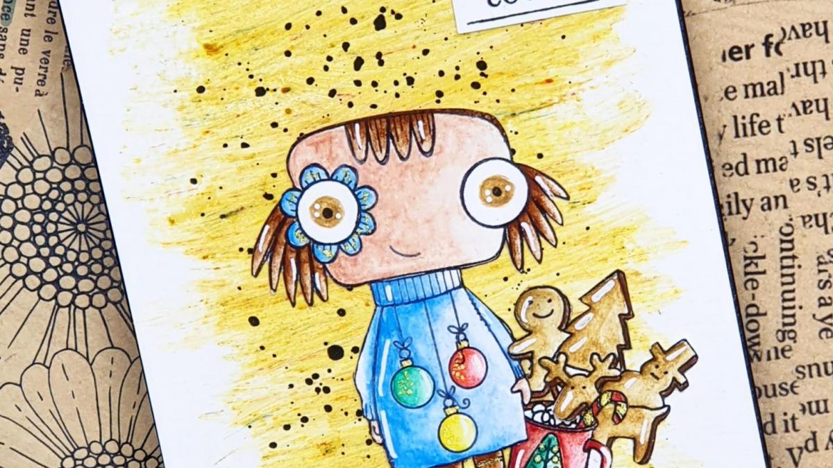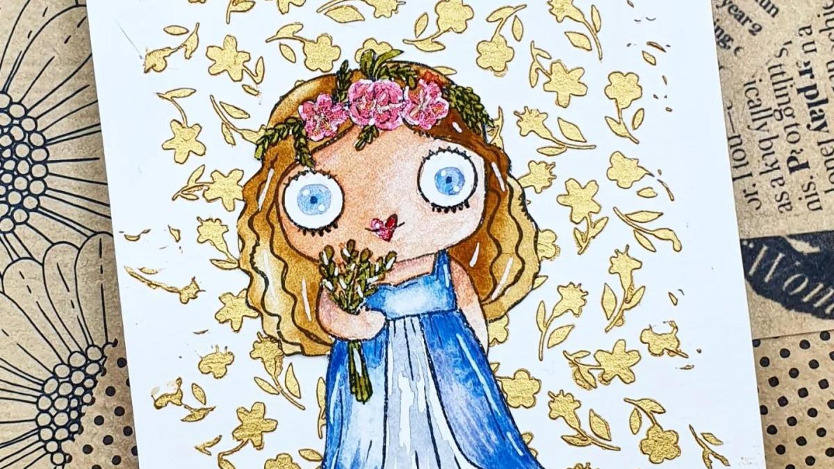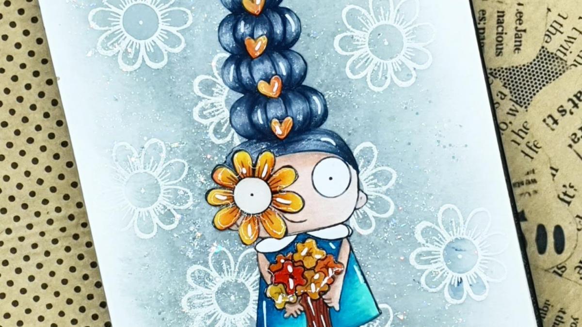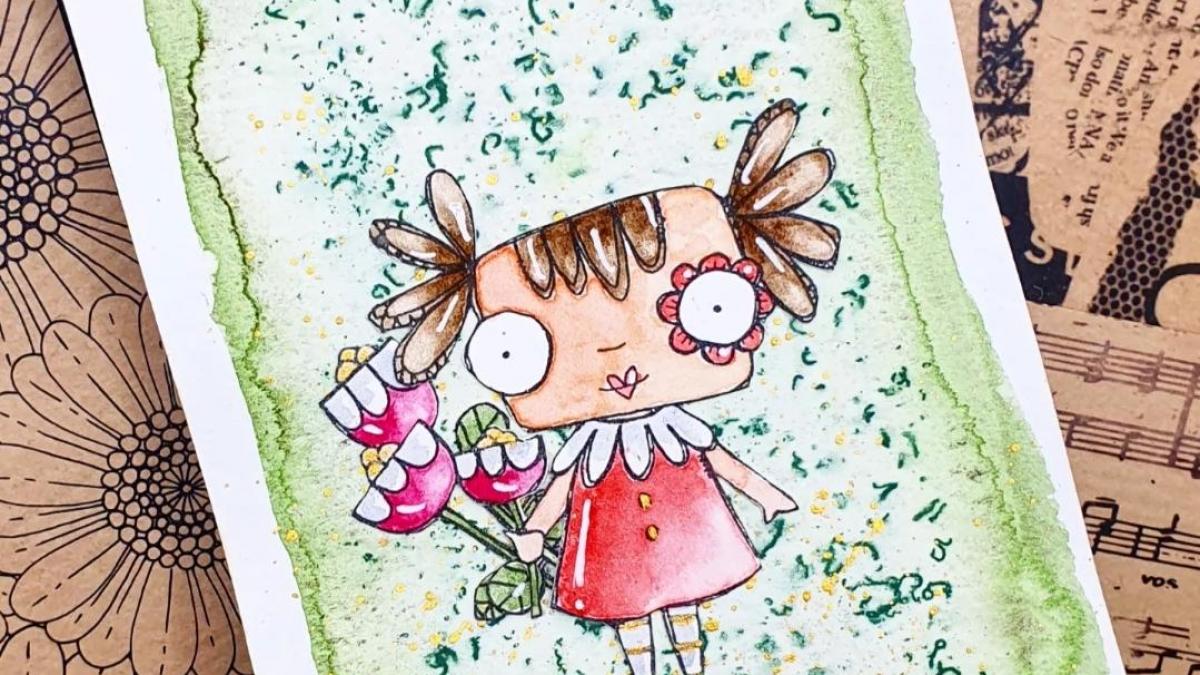 • CARTE P'TITE NANA PRINTANIERE AUX CRAYONS AQUARELLABLES