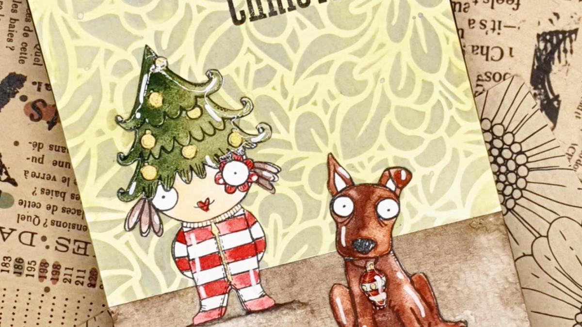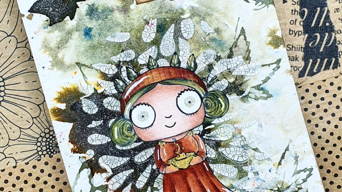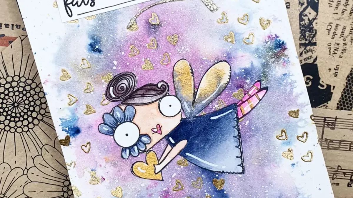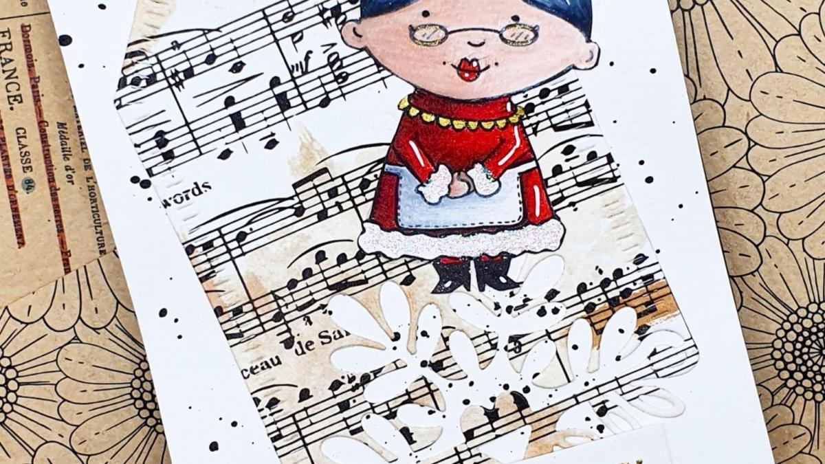 • CARTE P'TITE NANA PRINTANIERE AUX CRAYONS AQUARELLABLES