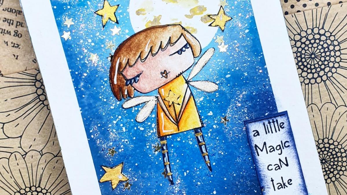 • Art Journal: jeune fille et la lune, aquarelle et Chou&flowers