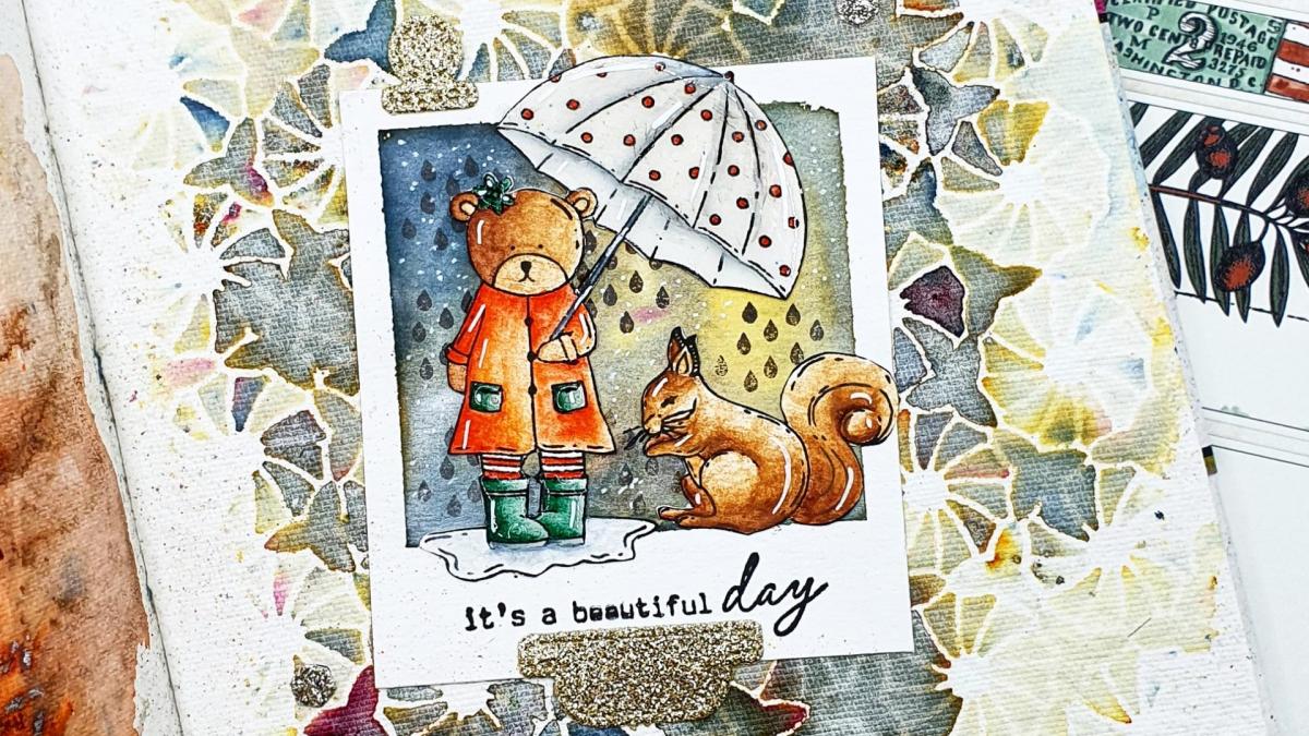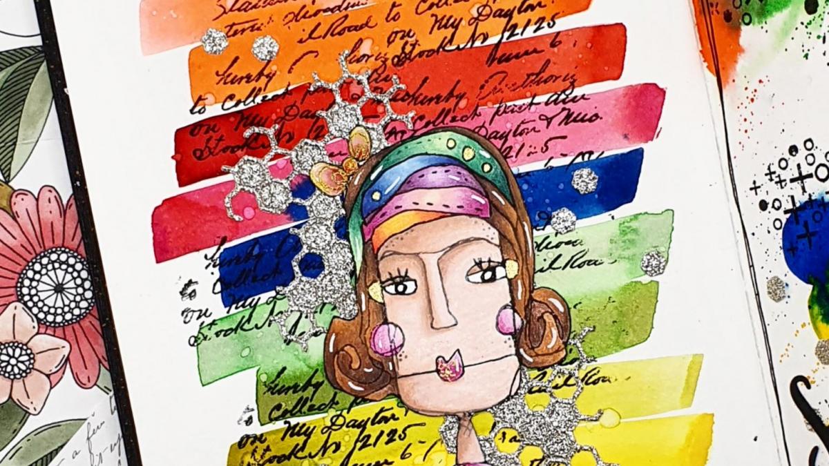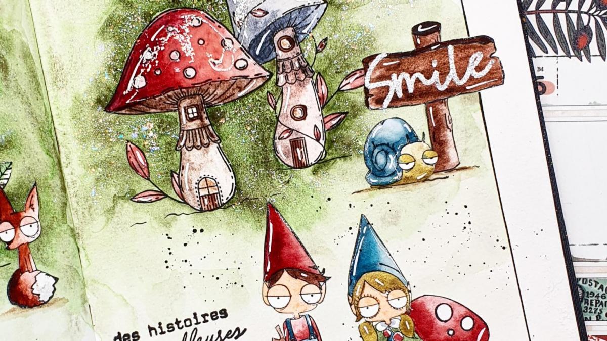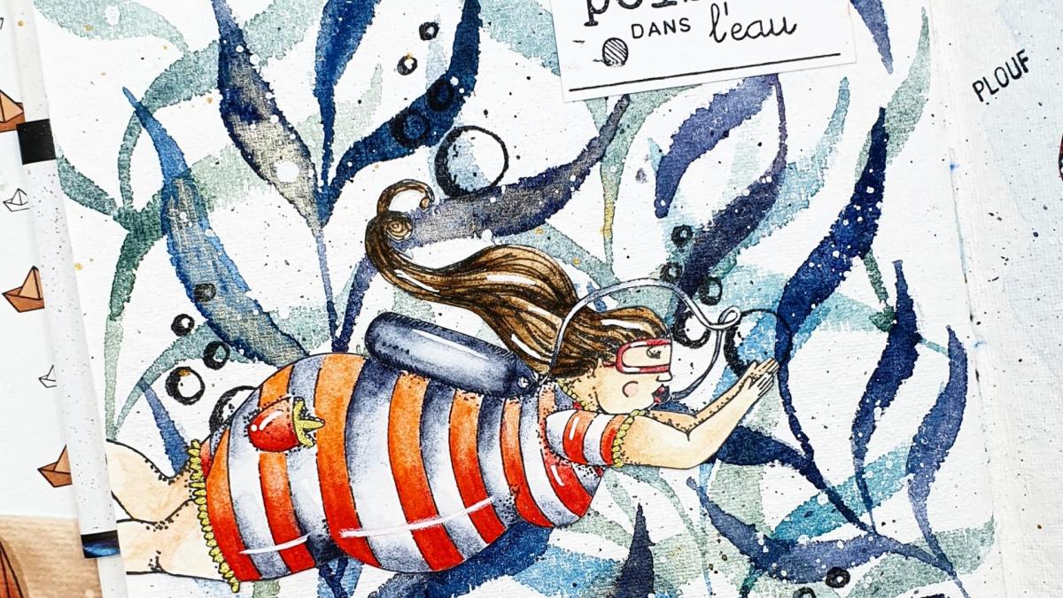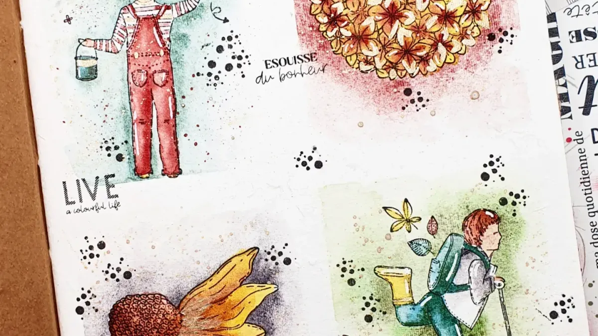 Page d'art Journal réalisée avec les tampons Chou and Flowers. Colorisation à l'aquarelle artisanale Atelier couleur Grenadine. Retrouve le tuto Vidéo complet en cliquant sur le lien
