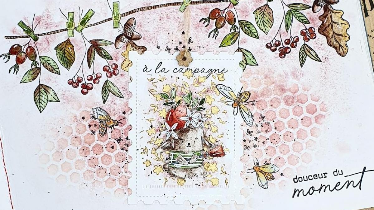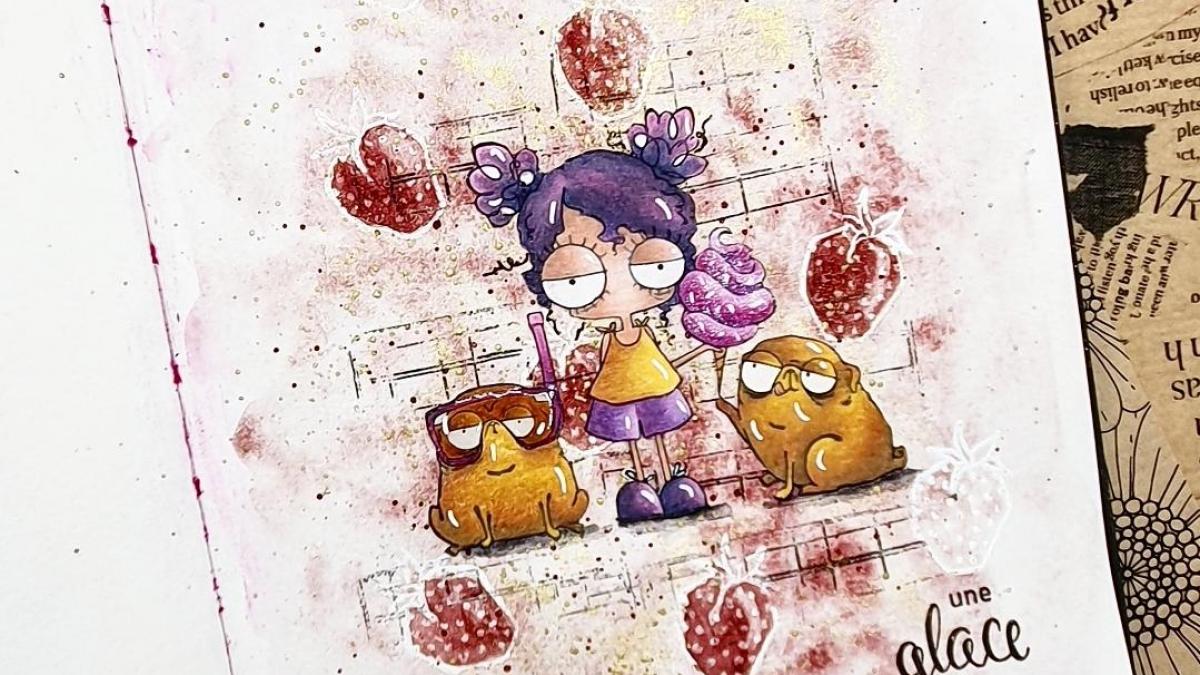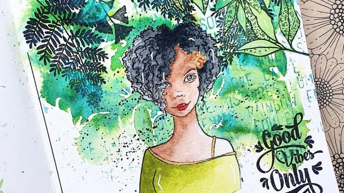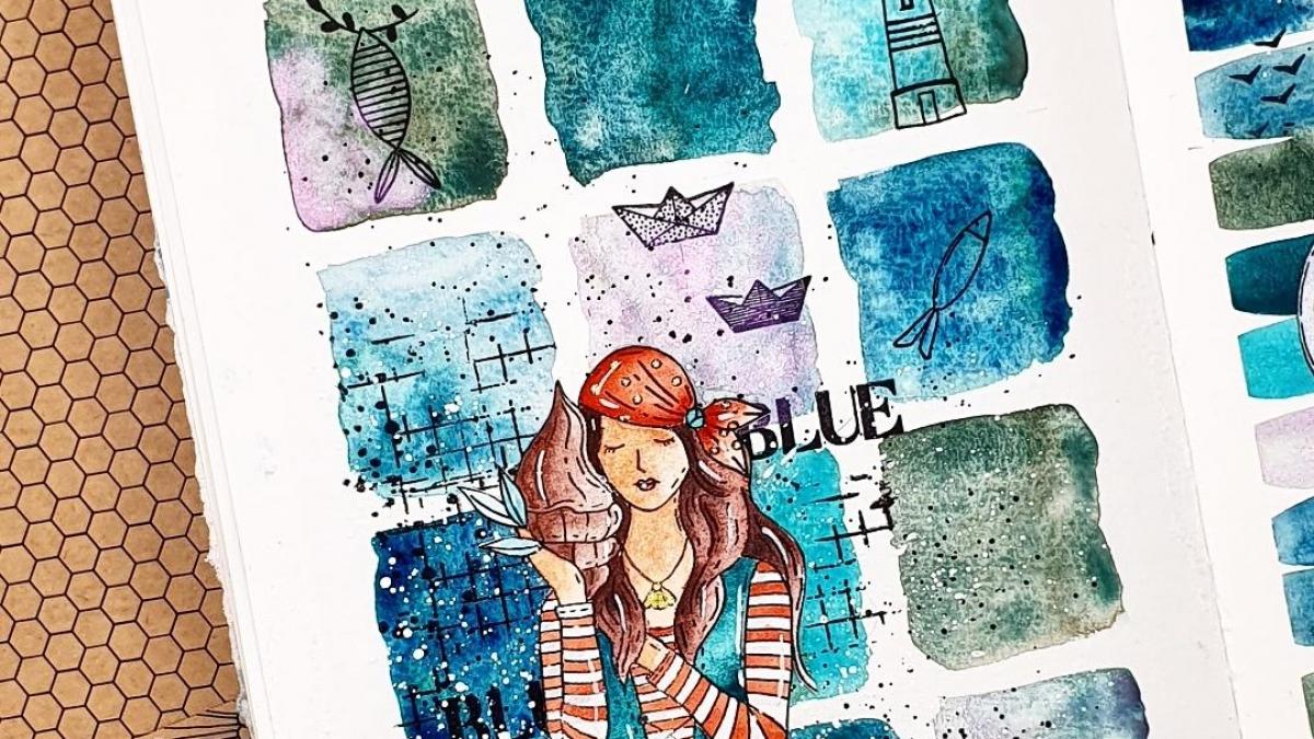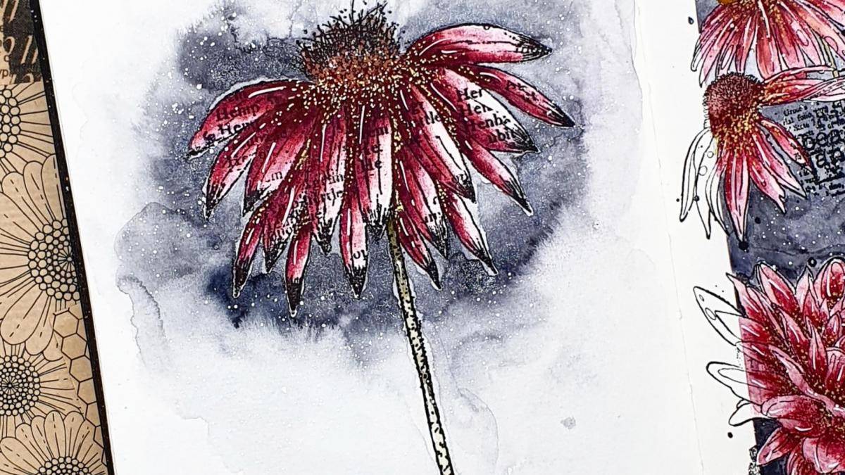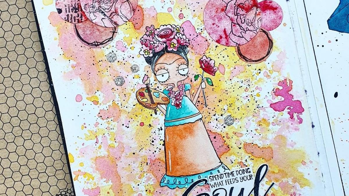 Page d'art Journal réalisée avec les tampons Chou and Flowers. Colorisation à l'aquarelle artisanale Atelier couleur Grenadine. Retrouve le tuto Vidéo complet en cliquant sur le lien