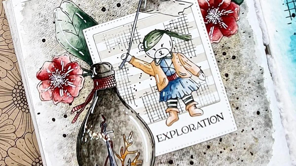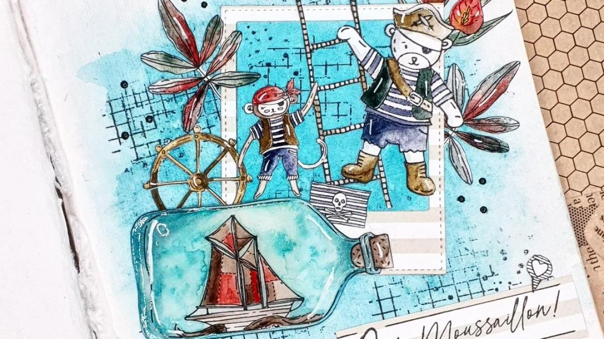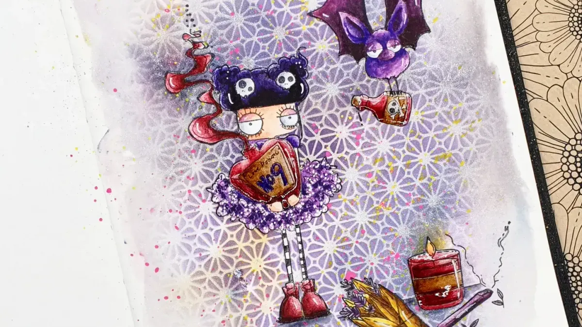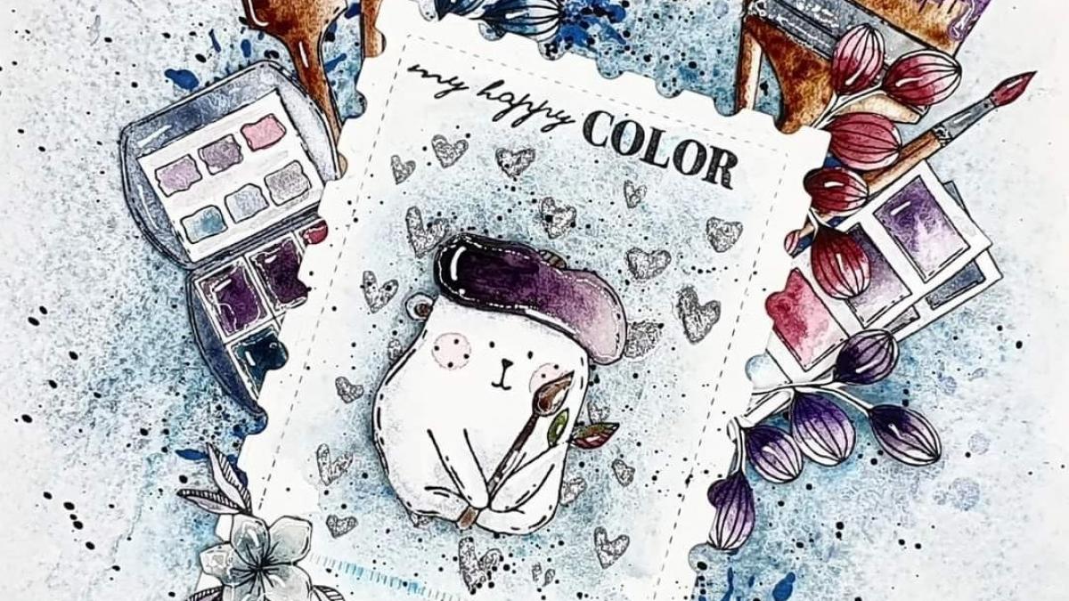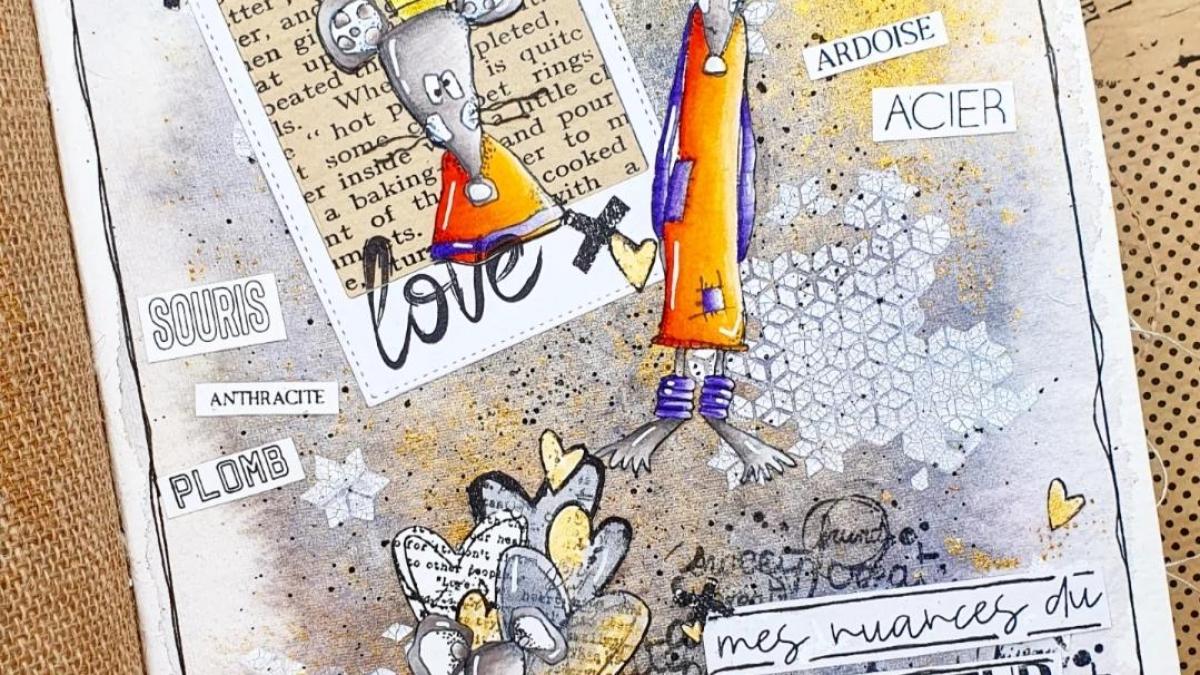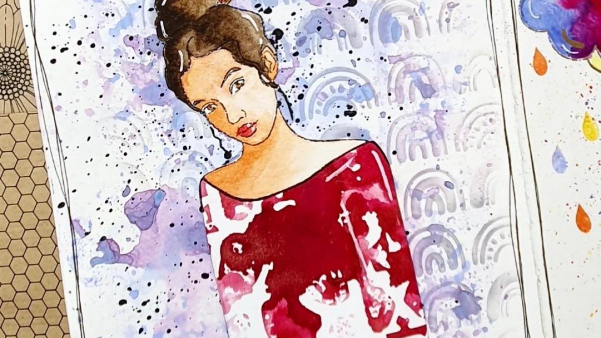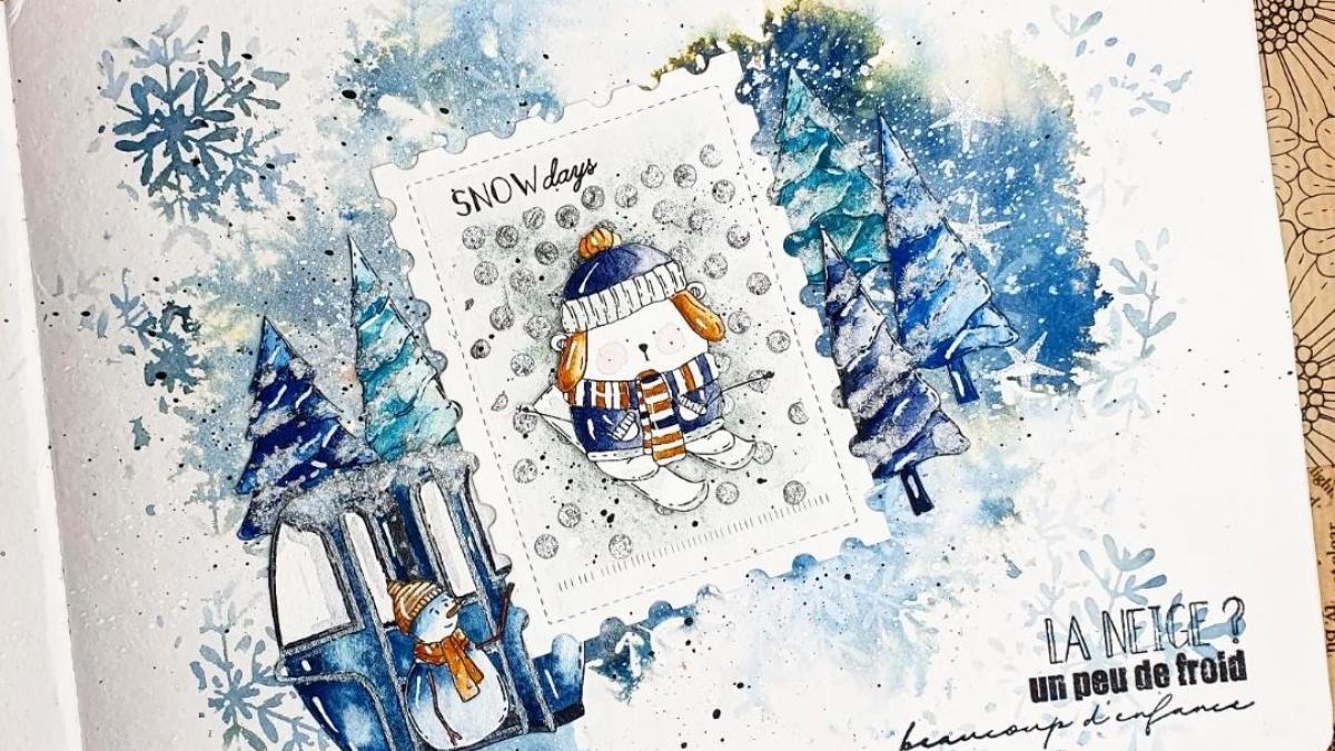 Page d'art Journal réalisée avec les tampons Chou and Flowers. Colorisation à l'aquarelle artisanale Atelier couleur Grenadine. Retrouve le tuto Vidéo complet en cliquant sur le lien