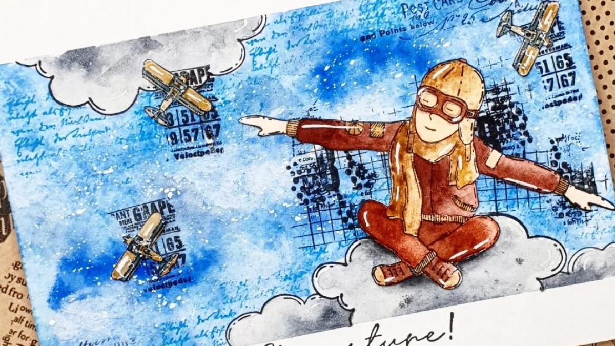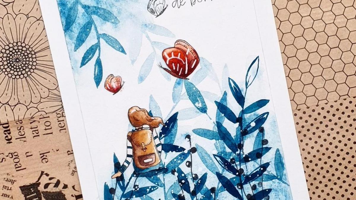 • CARTE P'TITE NANA PRINTANIERE AUX CRAYONS AQUARELLABLES