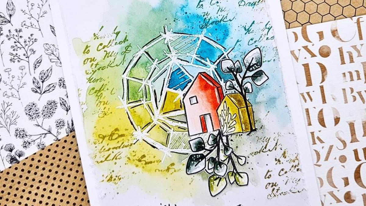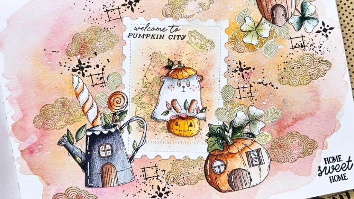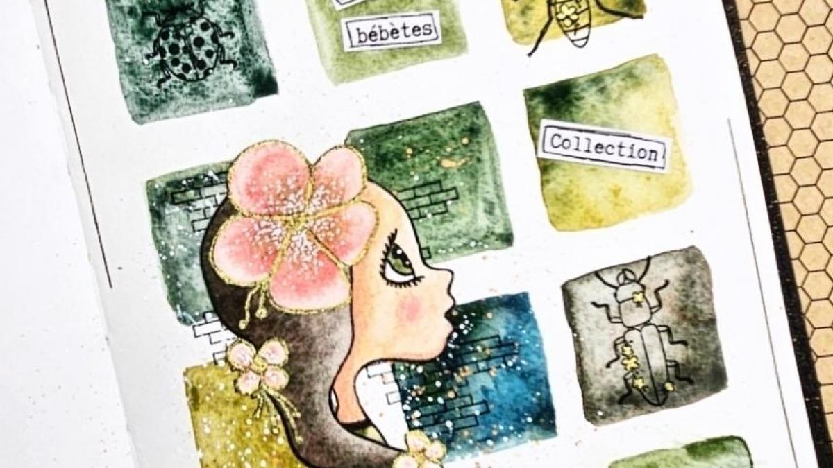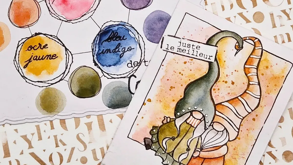 Page d'art Journal réalisée avec les tampons Chou and Flowers. Colorisation à l'aquarelle artisanale Atelier couleur Grenadine. Retrouve le tuto Vidéo complet en cliquant sur le lien