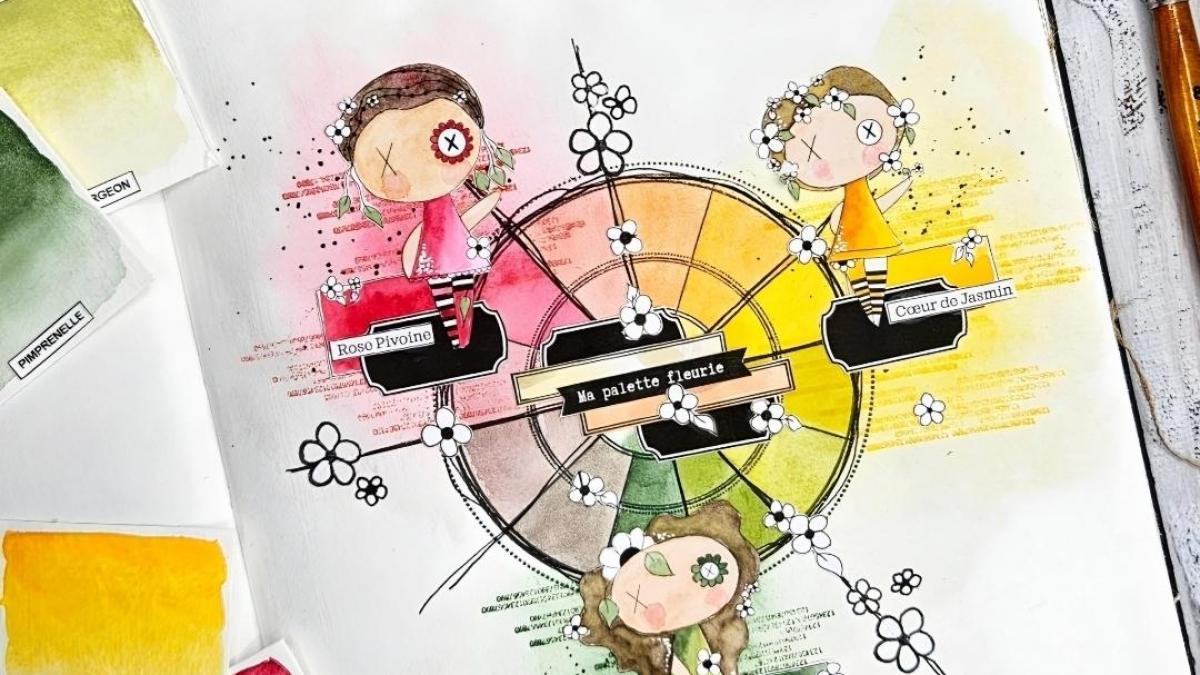 Art Journal roue des couleurs fleurie avec l'art en ciel de christelle