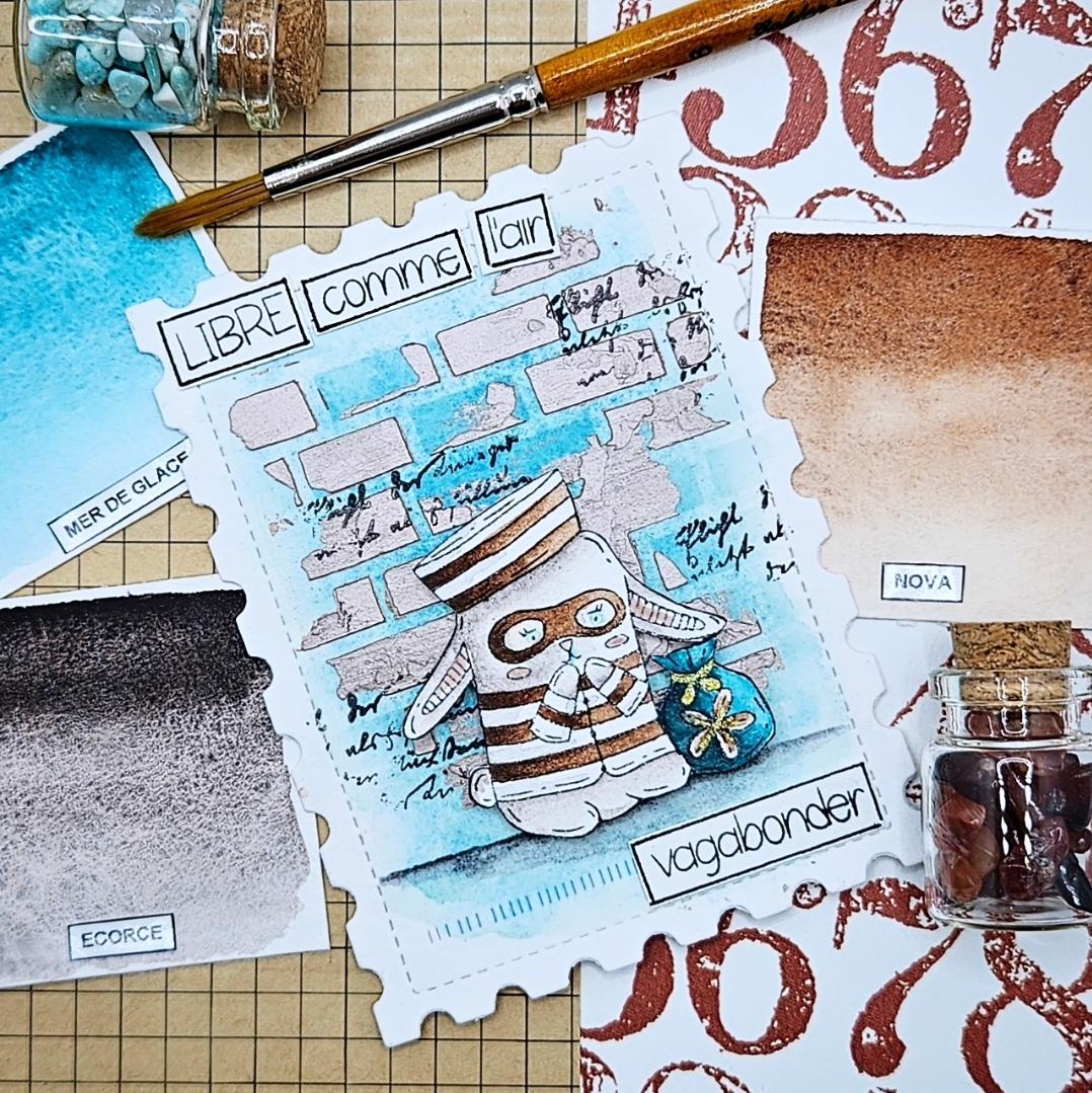 Pour le timbre Doudou, je viens découper un format timbre avec le DIE timbre (le plus grand format) de la Fée du Scrap dans un papier aquarelle Fontaine grain nuageux : https://amzn.to/3UrMGo5